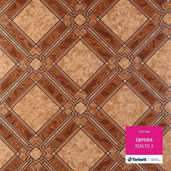 Плиточный дизайн. Керамическая плитка способна изменять пространственные ощущения – добавлять или скрадывать объем. Таким же эффектом обладает и линолеум ее имитирующий. Например, дизайн под мелкую плитку – отличное решение для малогабаритной кухни. Она прибавляет ей объема. Примеры такого дизайна – RAVENA 2 (Фаворит), FORTUNA 2 и RIALTO 3 (Европа), ALASKA 1 (Discovery).